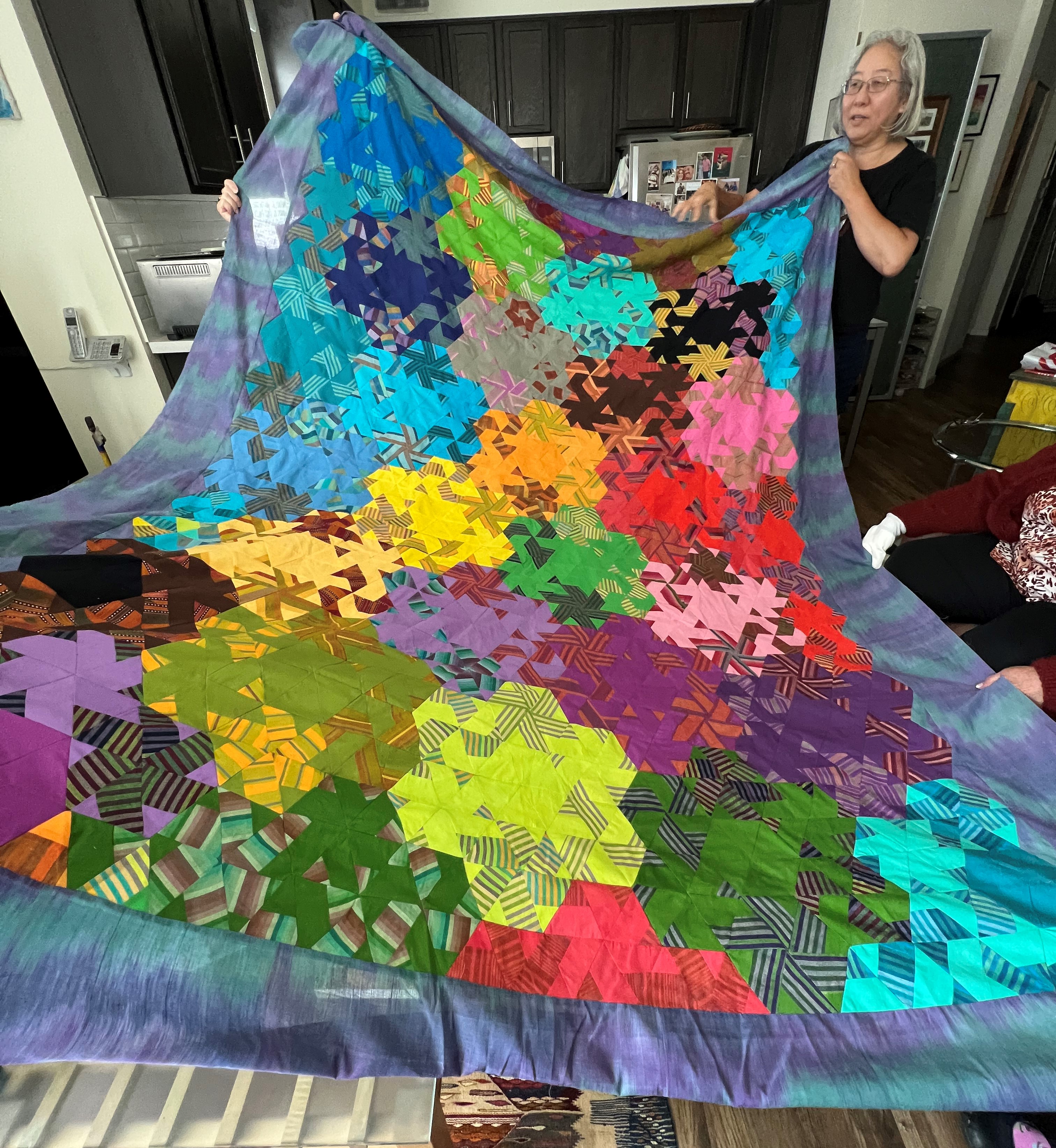 Mindy brought a lot to share. Her EPP project is coming along. This colorful endeavor, which will eventually be a piece of wall art, is composed of ¾” pieces.